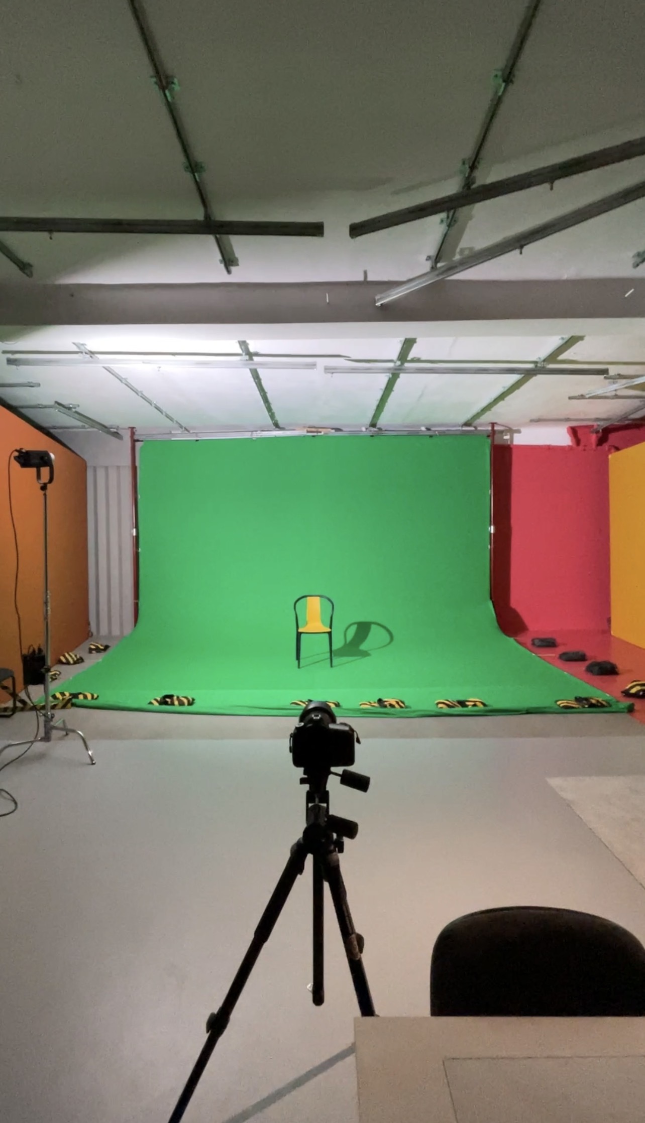 Green screen dostępny w Studio PUZZEL to duży materiał o wymiarach 6 × 6 m i wysokości 3,5 m, przeznaczony do realizacji nagrań video, produkcji reklamowych, sesji zdjęciowych oraz ujęć wymagających kluczowania tła. Powierzchnia pozwala na swobodną pracę z sylwetką, ruchem i większym planem zdjęciowym.